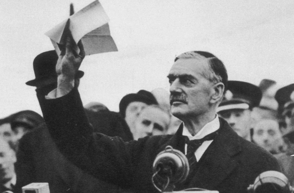 Britain’s prime minister, Neville Chamberlain (1869-1940), returned home waving the agreement aloft and proclaiming “peace in our time”. Chamberlain, pictured below, completely misread Hitler. The British and French imagined they could appease the Nazi leader but predictably, he came back for more, swallowing the rest of Czechoslovakia in 1939.