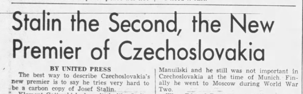Czechoslovakia went through the same process. From 1946 to 1948, Gottwald was prime minister while Beneš continued as president. Then in February 1948, the Soviets backed a communist coup d’etat and four months later, Gottwald (pictured below) was elected president. There had been concerns in Moscow that support for the communists among the Czech population was dwindling so Stalin ordered the elimination of all opposition.